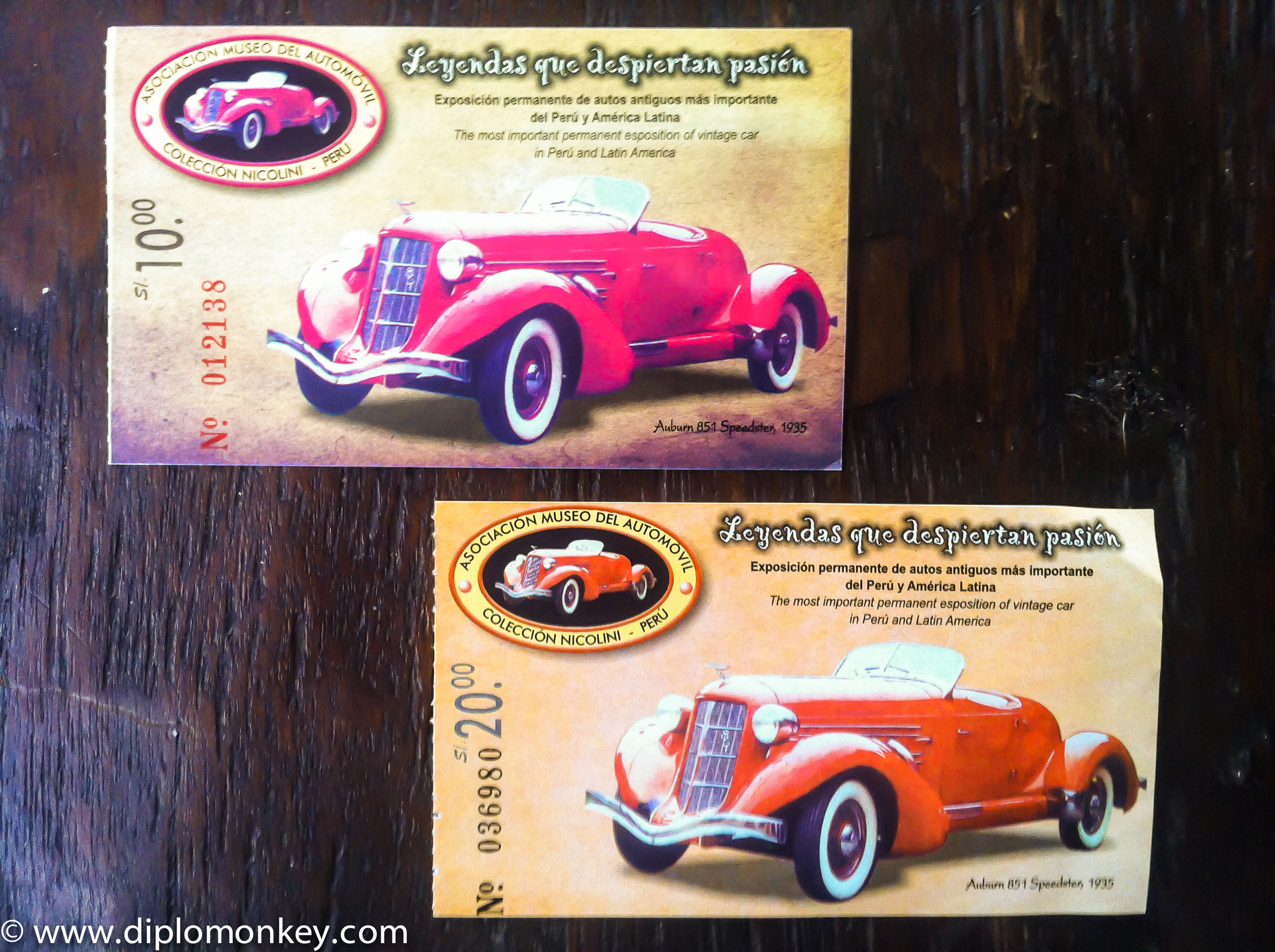 Car museum tickets, kid and adult entrance fees.